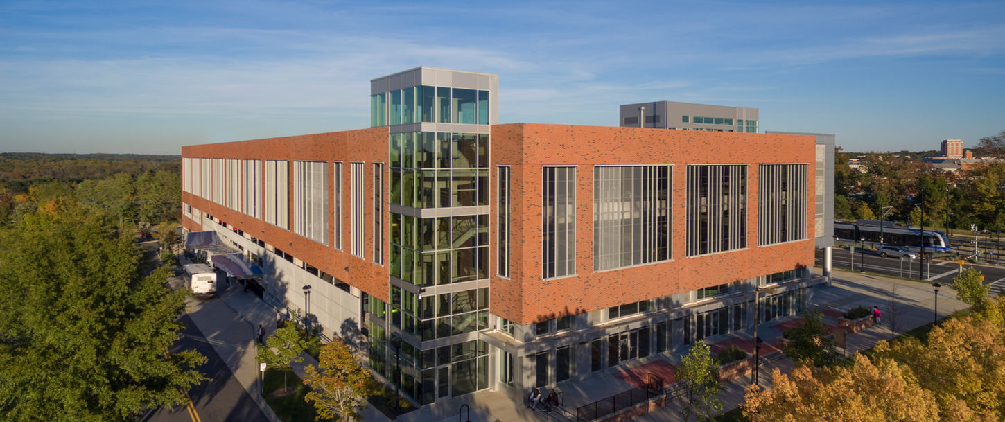 As part of the CATS LYNX Blue Line Extension project, Neighboring Concepts completed the design of JW Clay Parking Garage. The building, located at the corner of JW Clay Boulevard and N. Tryon Street and across from the UNC-Charlotte Campus, will serve the University Area. Standing four stories high and accommodating 700 parking spaces, it features 18,000 square feet of street level retail along both N. Tryon and JW Clay. The design of the building focuses on the pedestrian experience, while providing efficient parking configuration and an effective wayfinding signage system. The structural system is a pre-cast structure accented by brick and glass featuring light-filled curtain walls on the stair towers. Incorporated are perforated metal panels, designed with various opening densities that provide a rhythmic break from the repeating structure they sit within.